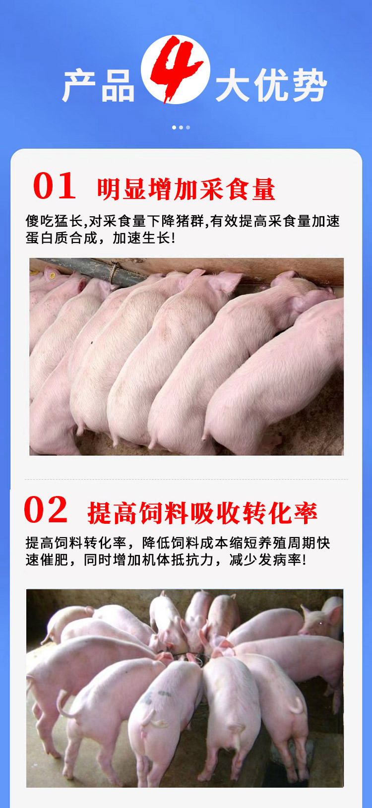 產(chǎn)品簡介:普旺肥大壯開疆促長膘肥體壯豬飼料添加劑。催肥抗病促生長,降低養(yǎng)豬成本,提前出欄。