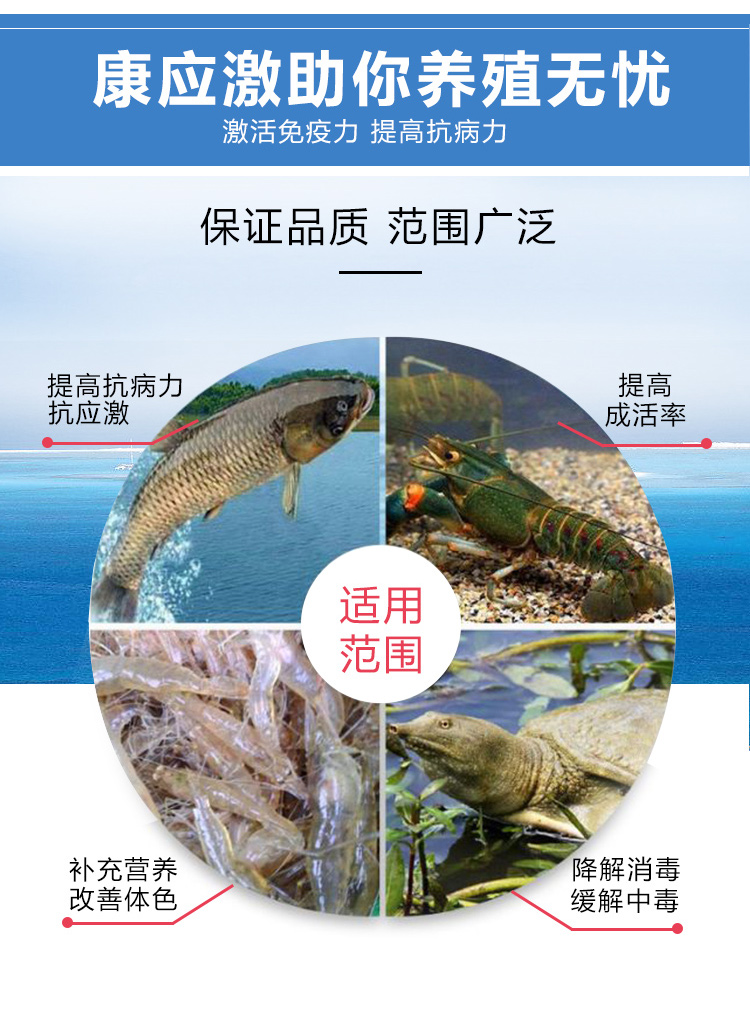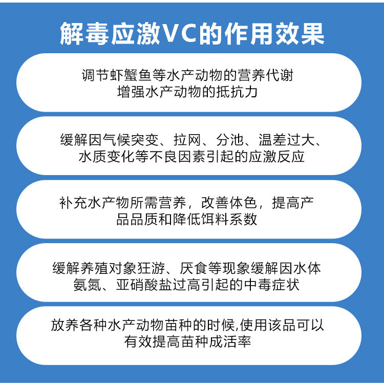 緩解因氣候突變、拉網、分池、溫差過大水質變化等不良因素引起的應激反應。" />