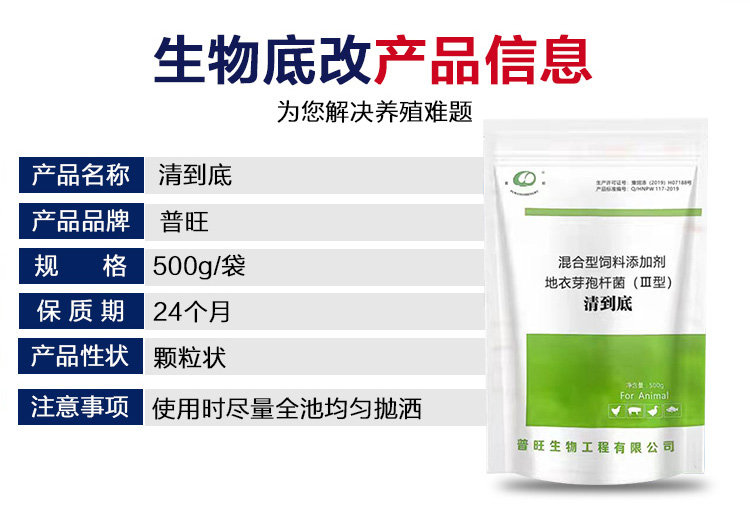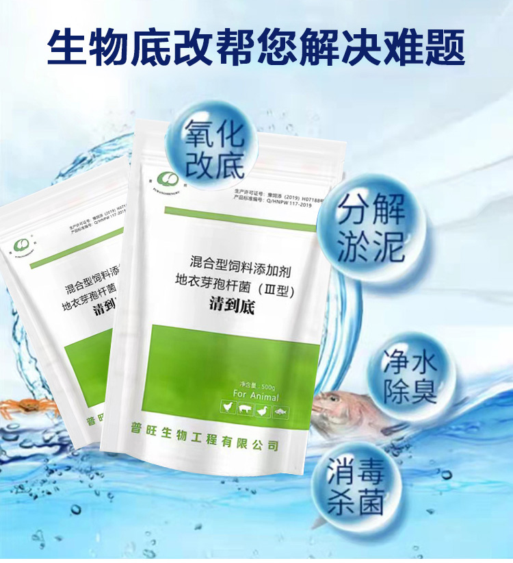 產(chǎn)品簡介:普旺生物水產(chǎn)藥清到底 改底調(diào)水增氧除臭分解淤泥混合型飼料添加劑-地衣芽孢桿菌 分解池底沉積的殘餌、糞便、動植物尸體等有機物,同時分解底層厚積 生物淤泥。生物改底幫你解決難題。
