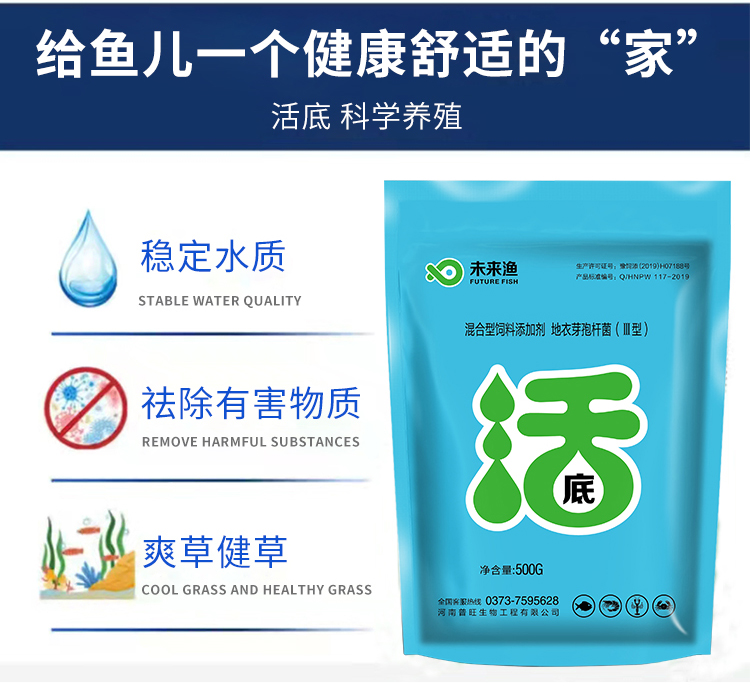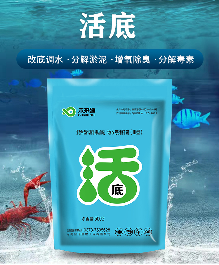 普旺獸藥廠家未來漁活底調水分解淤泥增氧除臭改底滅菌水產用飼料添加劑