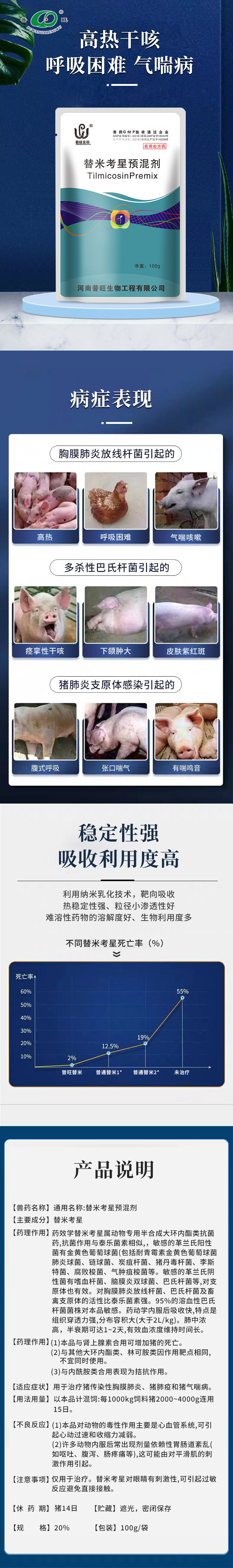 替米考星預混劑治療高熱干咳呼吸困難氣喘病畜禽通用