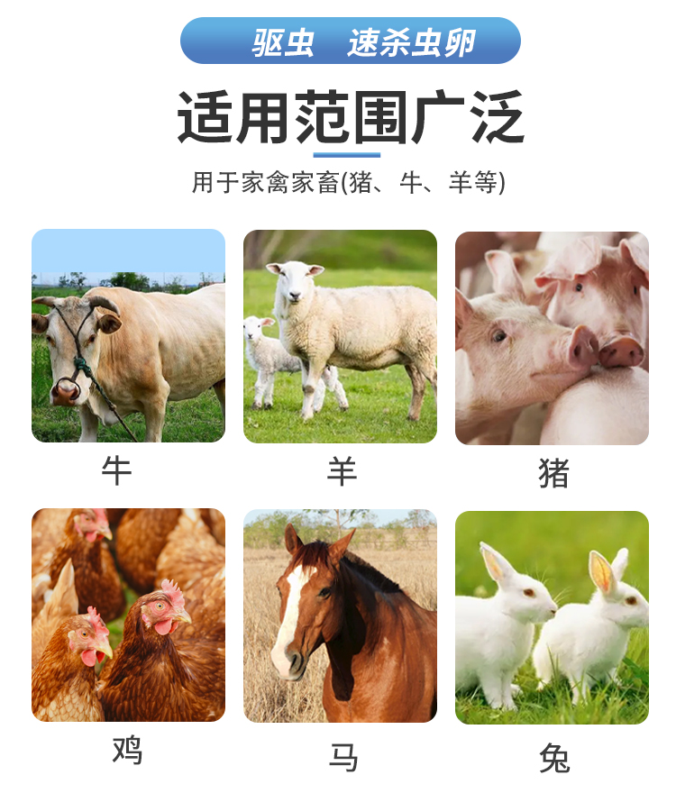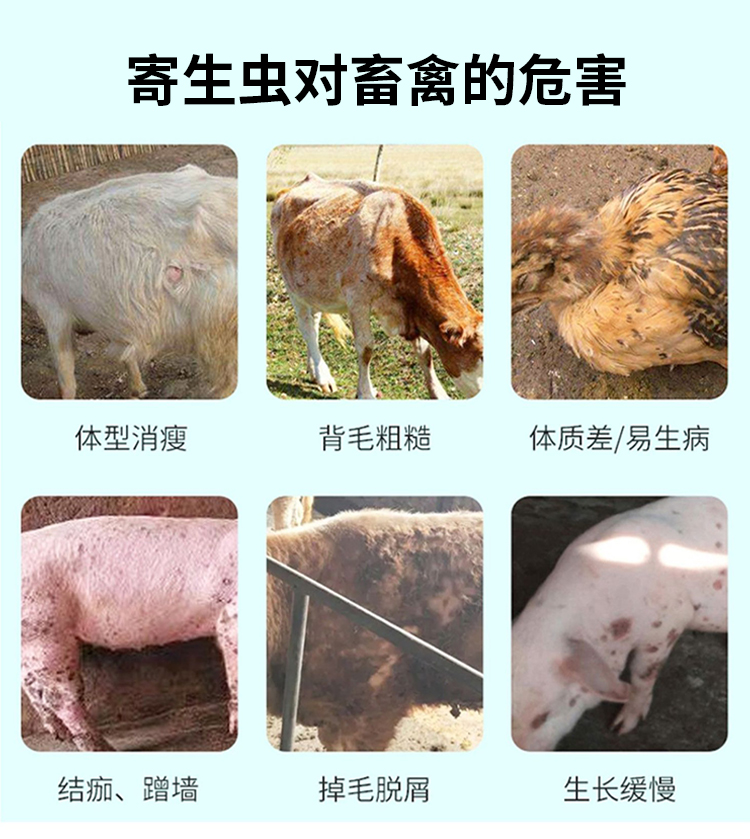 產品簡介:用于家禽家畜(豬、牛、羊)和禽的各種線蟲,疥螨病。蠅、蛆、虱、蜂等體內外寄生蟲病!